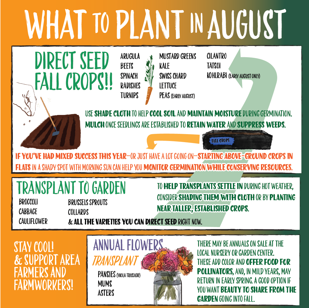 Use shade cloth to help cool soil and maintain moisture during germination. Mulch once seedlings are established to retain water and suppress weeds.