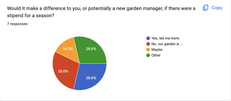The survey is set up so that those interested in (or learning more about) a garden stipend can weigh in on what garden management responsibilities should include. In this way, we can efficiently determine some accountability around this.