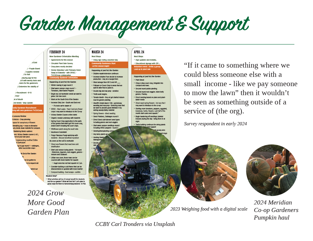 Mow between rows and around garden perimeters. (Or connect with more gardeners!)