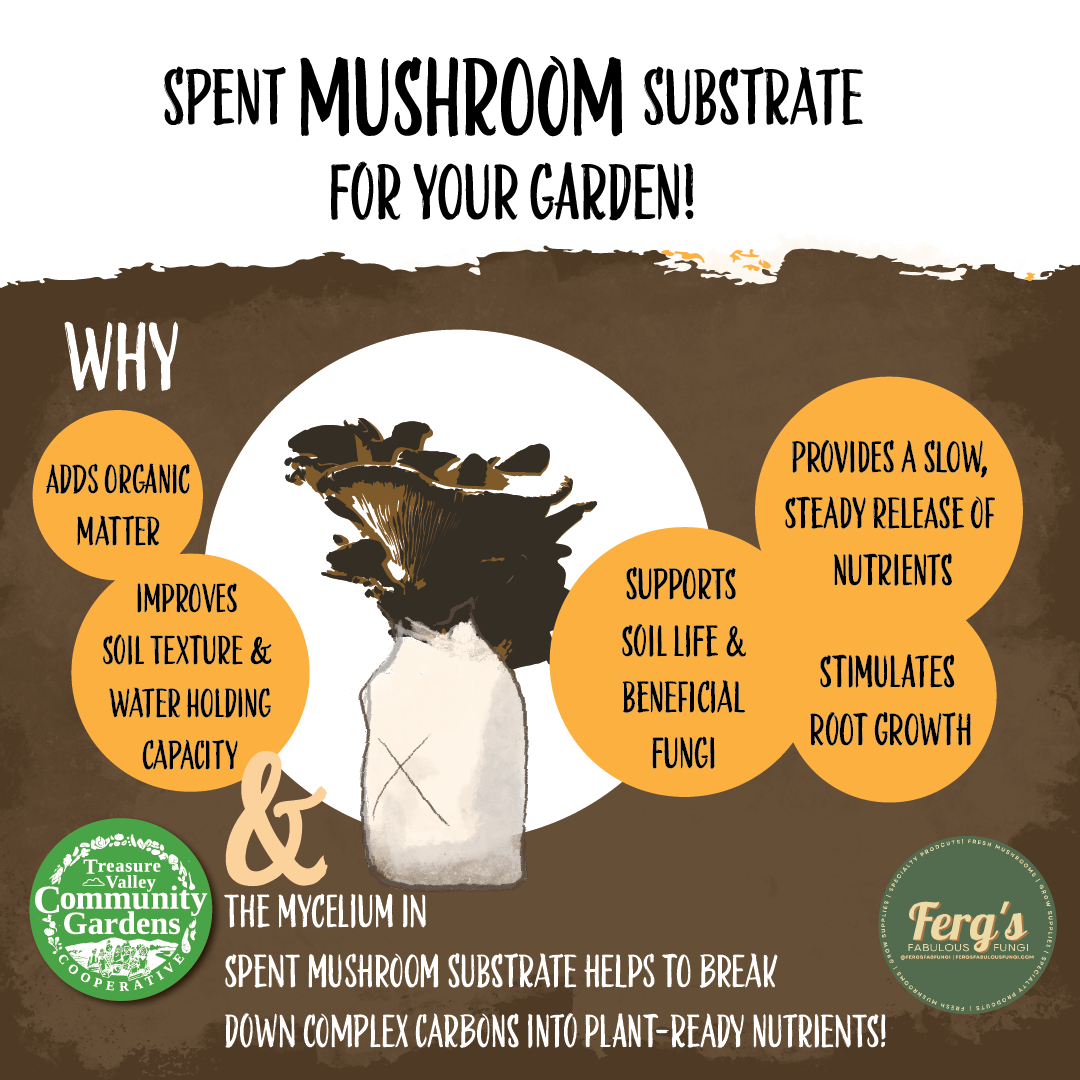 Need some? We recommend Ferg’s Fabulous Fungi in Caldwell — free pickup or affordable delivery options support the work behind TVCGCoop.