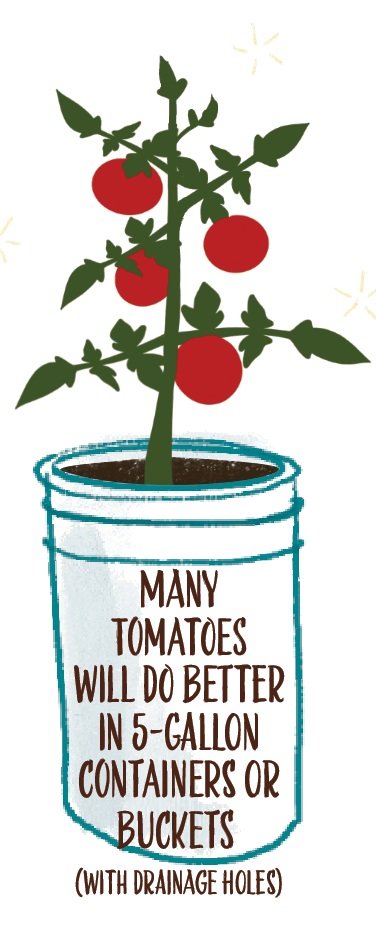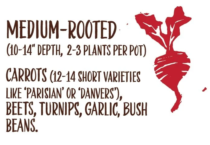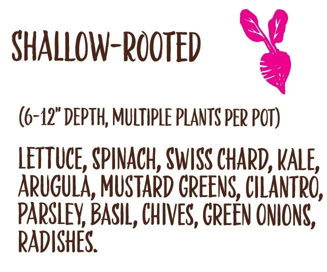 Use deep containers for root veggies and tomatoes, shallow ones for herbs and greens.